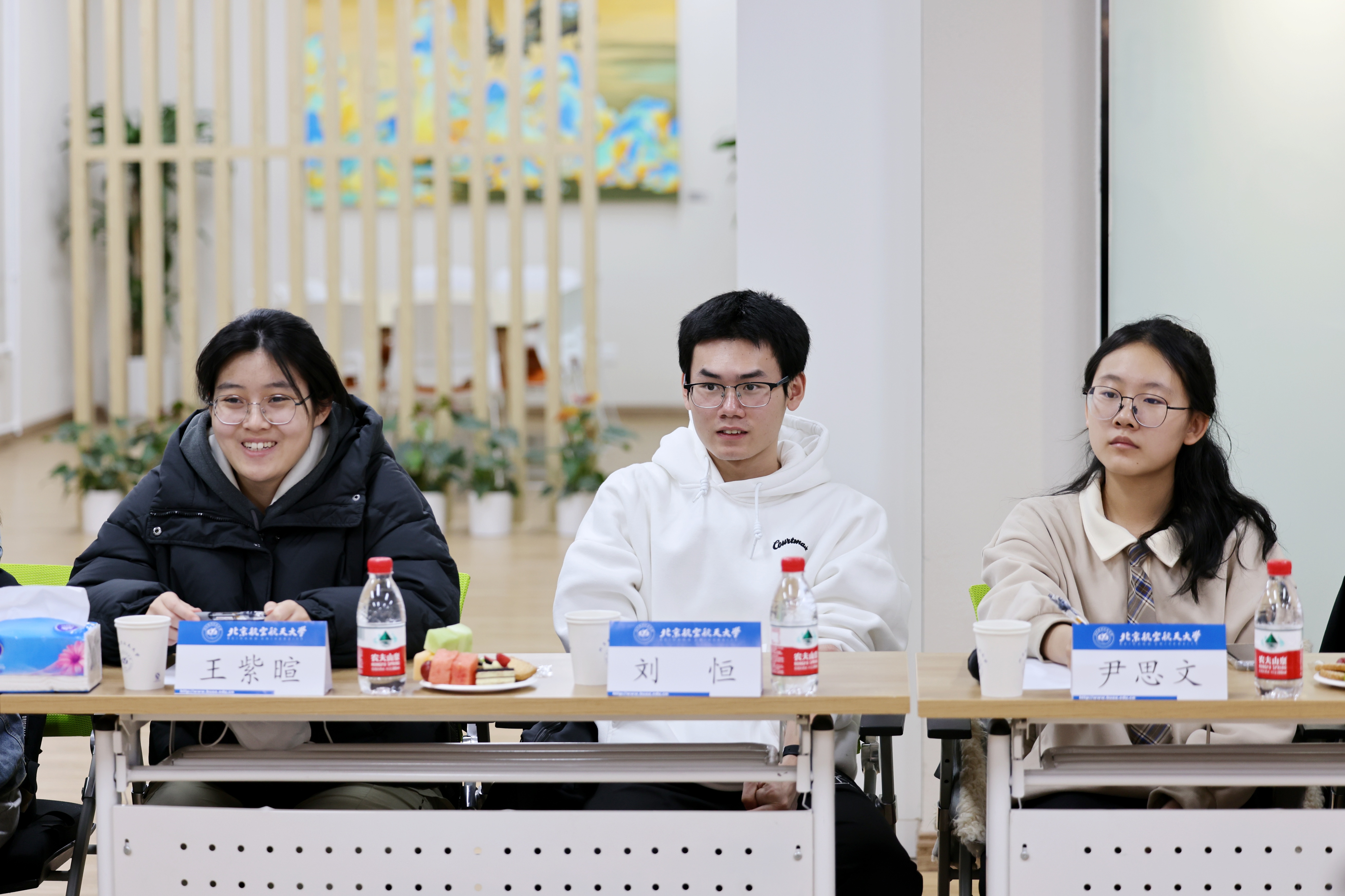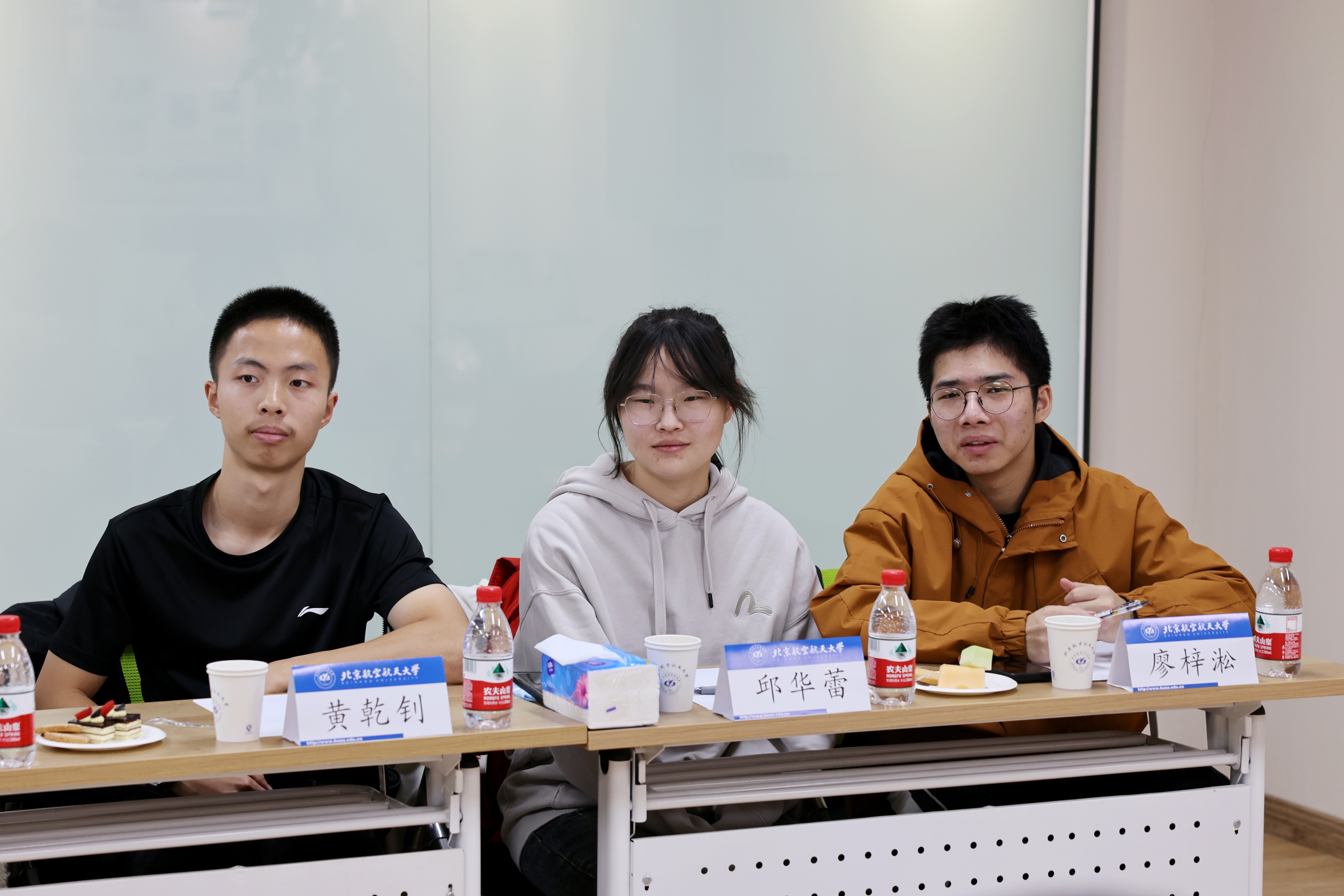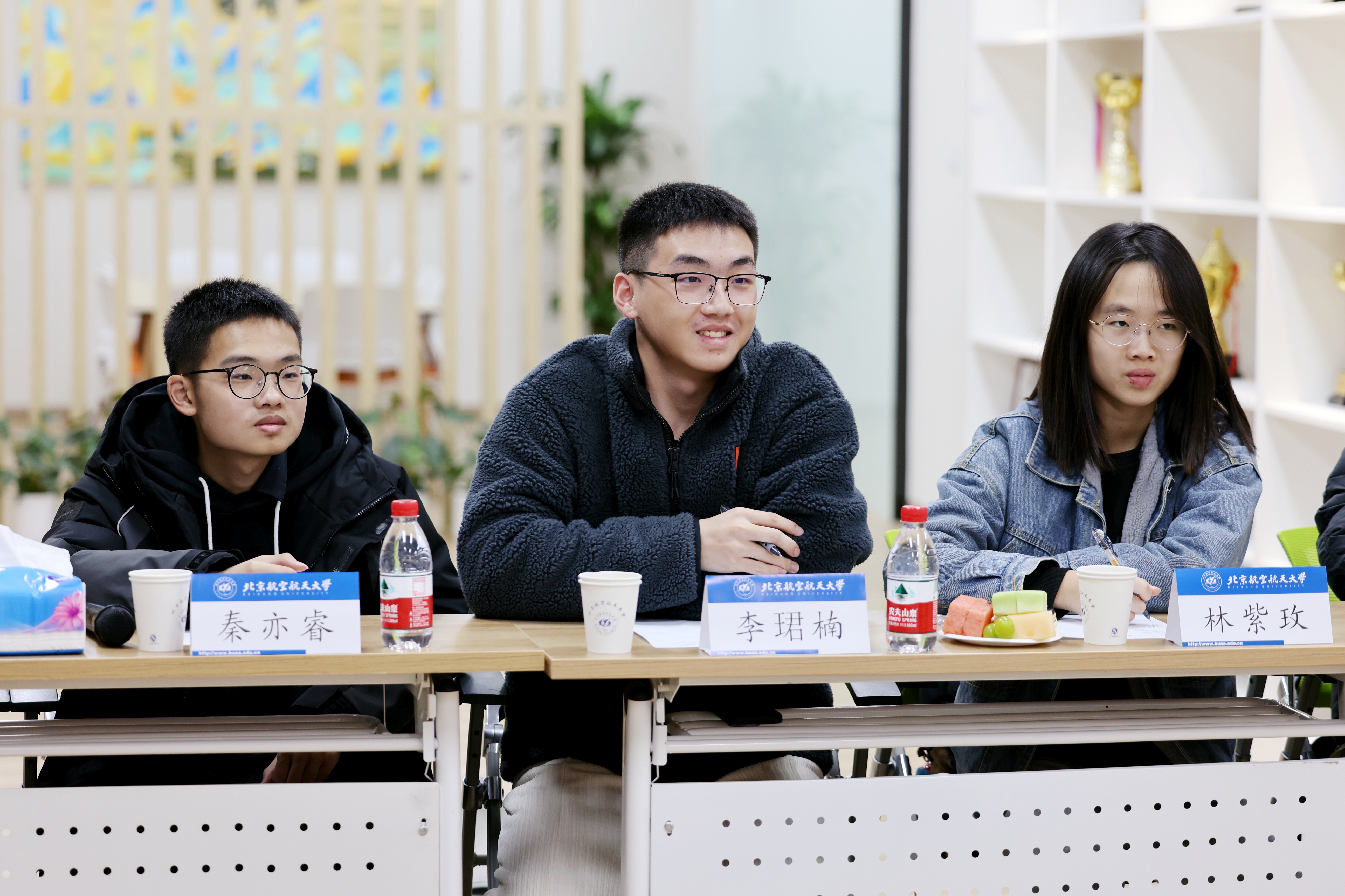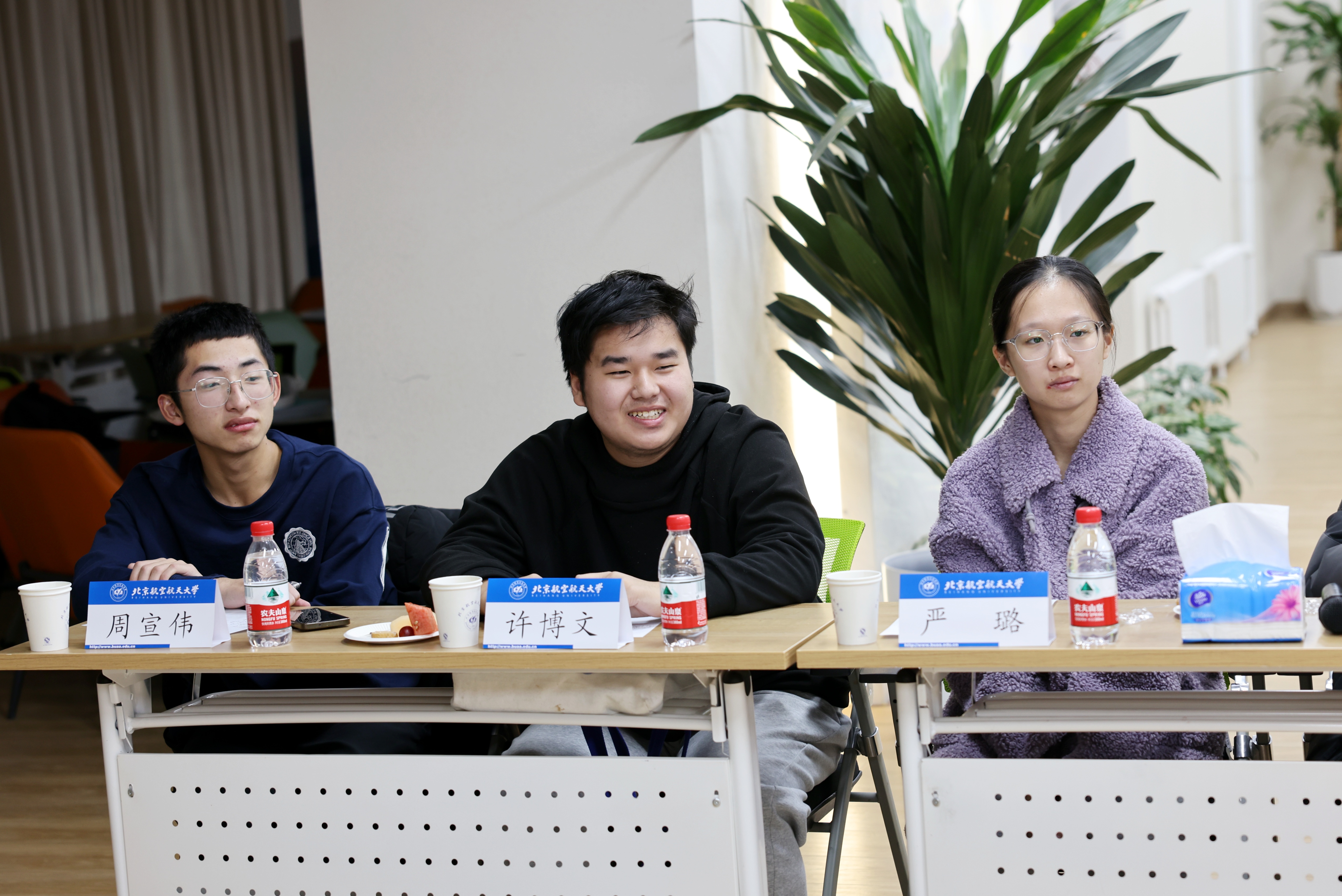 同学们逐一分享了到北航三个月以来的收获和思考,现场气氛热烈。守锷书院廖梓淞、士嘉书院黄乾钊提出了在大一参加科研实践的期待。冯如书院刘恒、守锷书院邱华蕾希望有更多机会走进各专业AG亚游