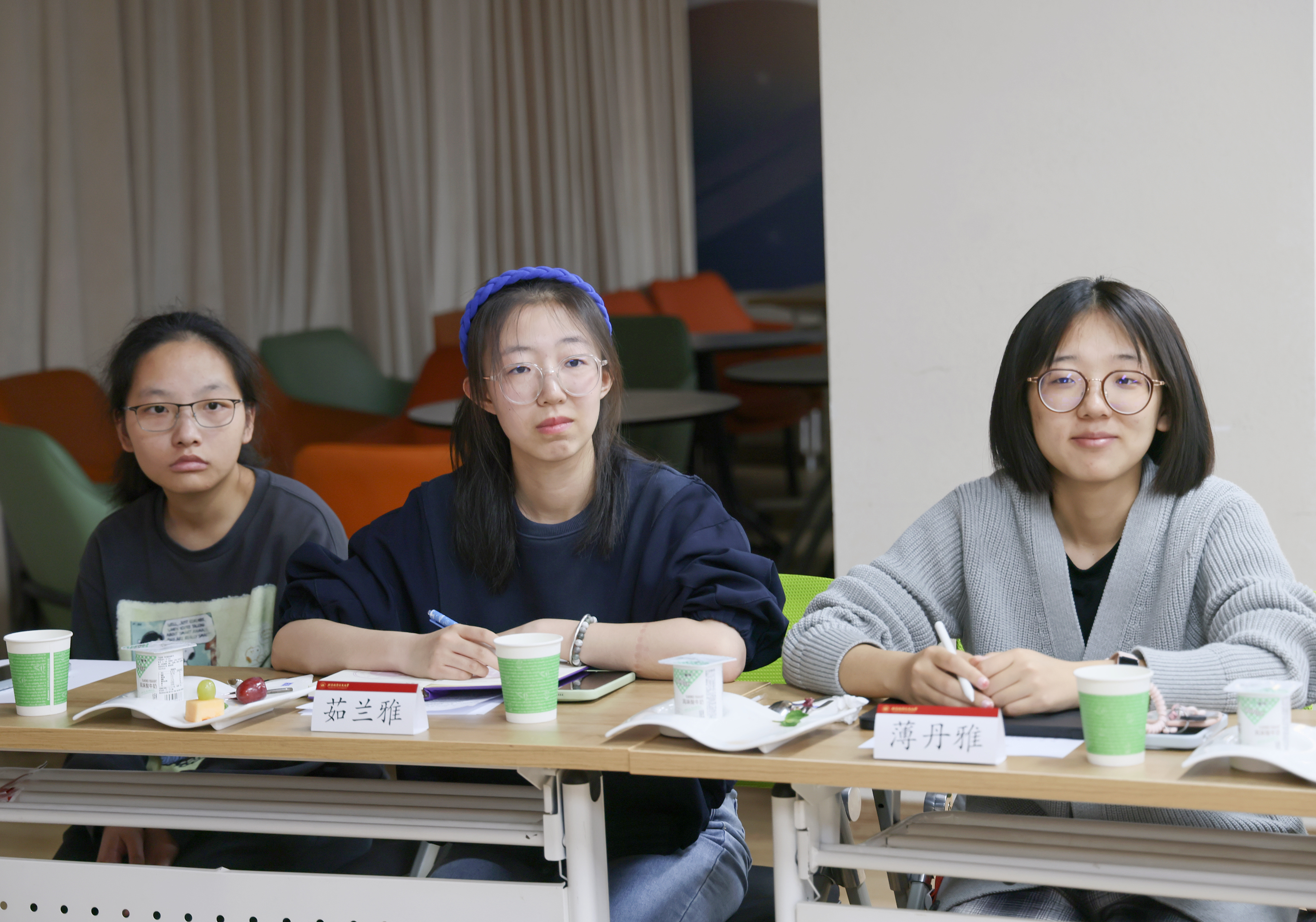 同学们踊跃发言,朱垚洁、茹兰雅结合个人上课体验,希望优化课程授课时长。魏亚东、薄丹雅表达了对AG亚游