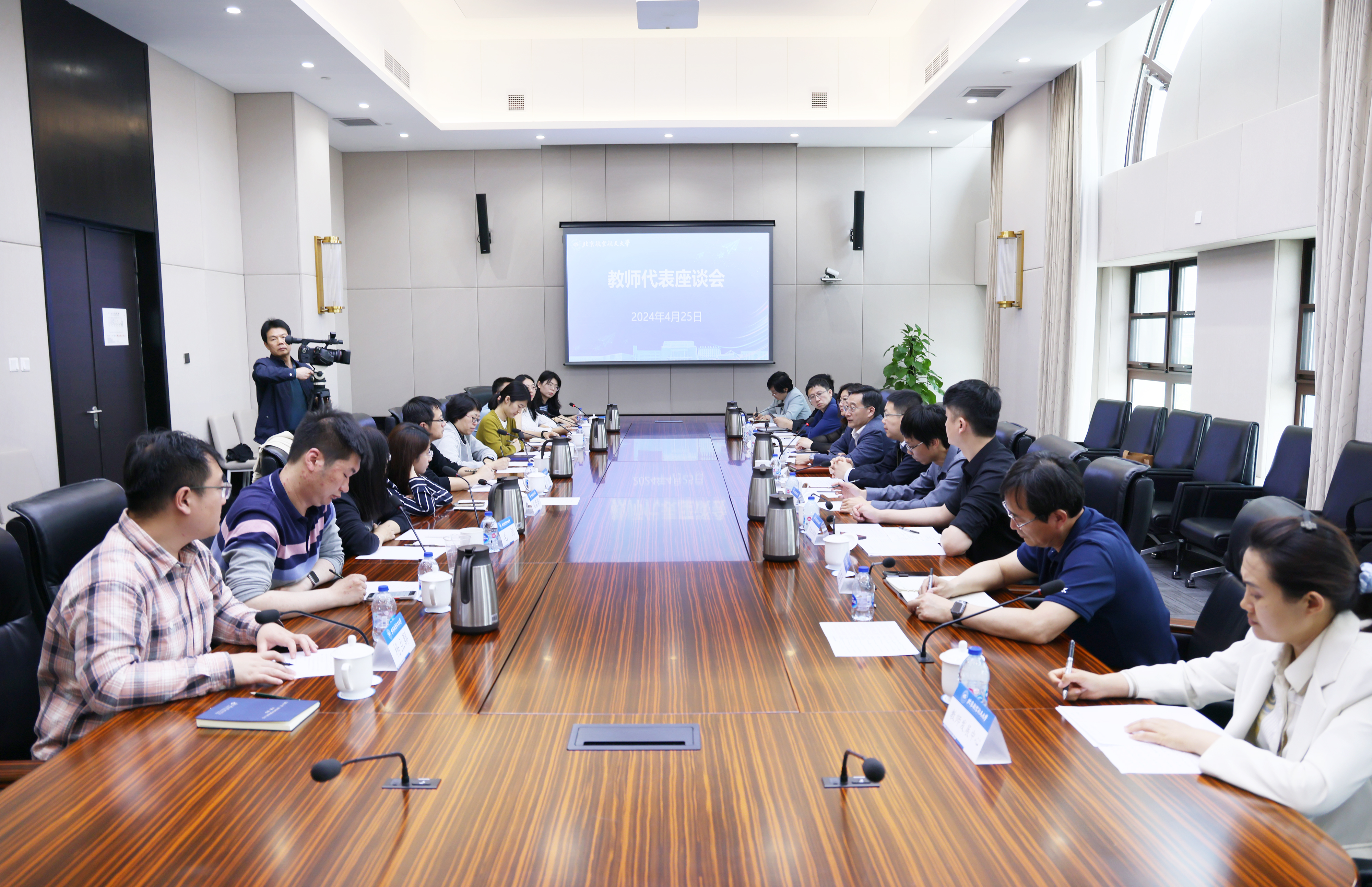 座谈中,王云鹏与各位教师逐一交流,认真听取每位教师的意见建议,高度认可大家在教学方面的潜心投入。他表示,邀请教师代表、学生代表参加座谈是人才培养大讨论的重要环节。通过为期两周的人才培养大讨论,AG亚游
