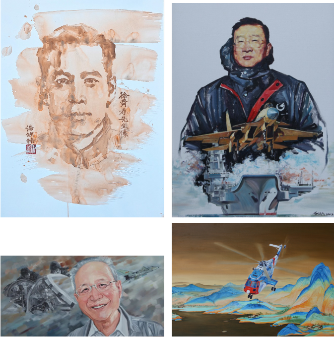 的宫浩钦教授作为本次画展的主创者,介绍这次展出的 52 幅作品是从他创作的一千多幅航空绘画作品中精选的,内容包括徐舜寿、顾诵芬、吴大观等航空大家和罗阳等英模代表人物的素描和油画肖像,以《千里江山图》为背景的新时代航空装备等。宫浩钦还为观展嘉宾详细讲述每幅作品的创作故事,传递出作品背后的航空历史、航空文化、航空科技蕴涵的精神力量。