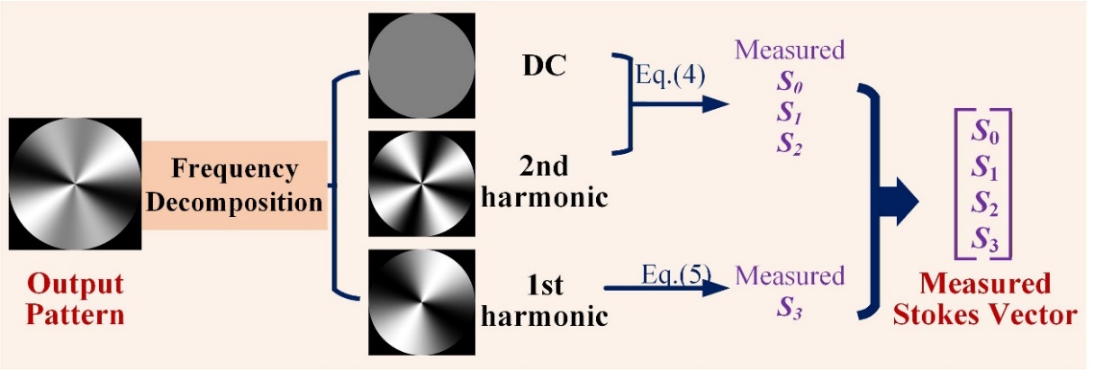 后向解耦:利用课题组原创的频域分解(FDD)算法,将特征图案解耦成彼此独立的谐波分量信道,精准解析全偏振信息。