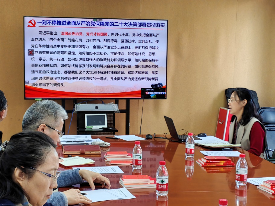路新主楼E804会议室,深入学习贯彻第二十届中央纪律检查委员会第二次全体会议精神。会议由王少萍书记主持,吕金虎、贾子超、李阳、郑征、尚耀星、王薇、张海、王艳东参加了本次集中学习研讨。