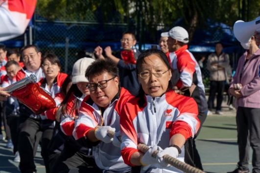 教职工在率先开展的拔河比赛中展现团结友爱、奋斗与拼搏,随后其余体育项目依次开展。AG亚游