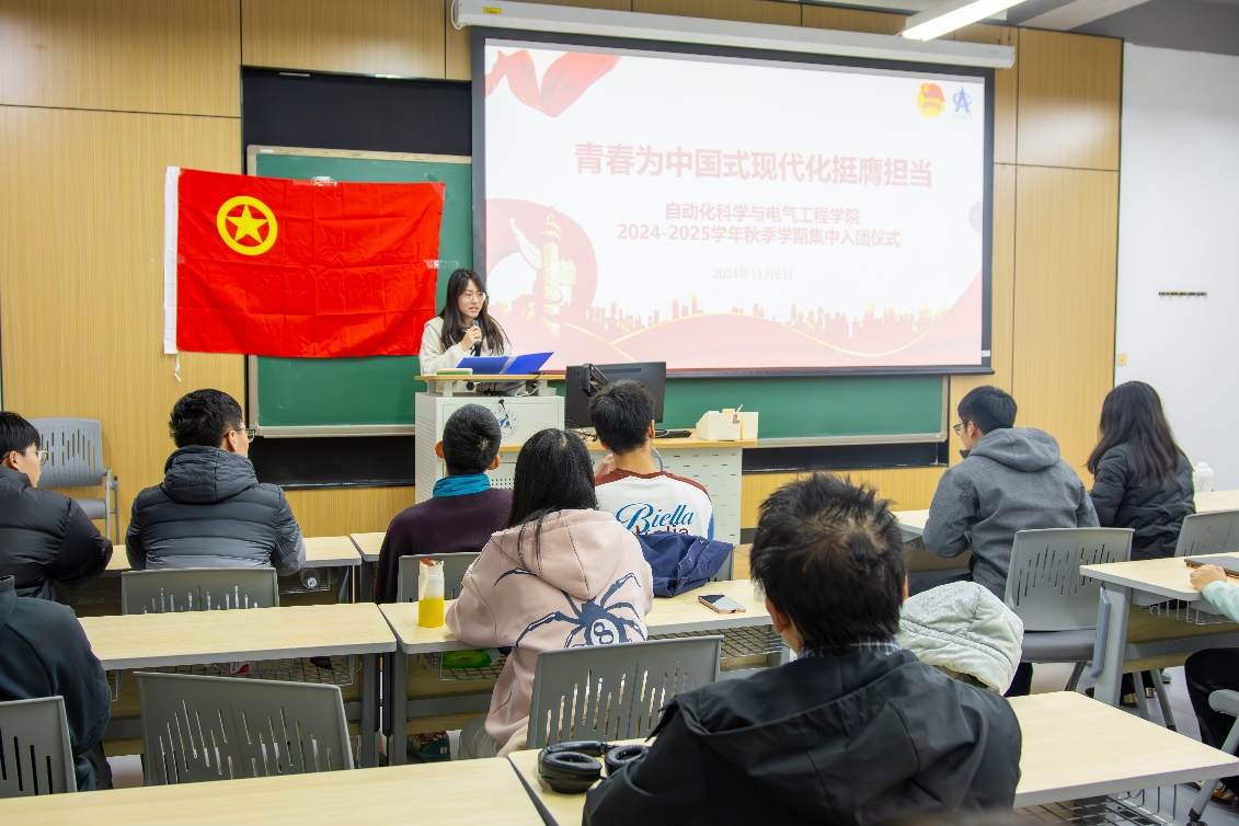 在新主楼D215举办“青春为中国式现代化挺膺担当”2024-2025学年秋季学期集中入团仪式。AG亚游