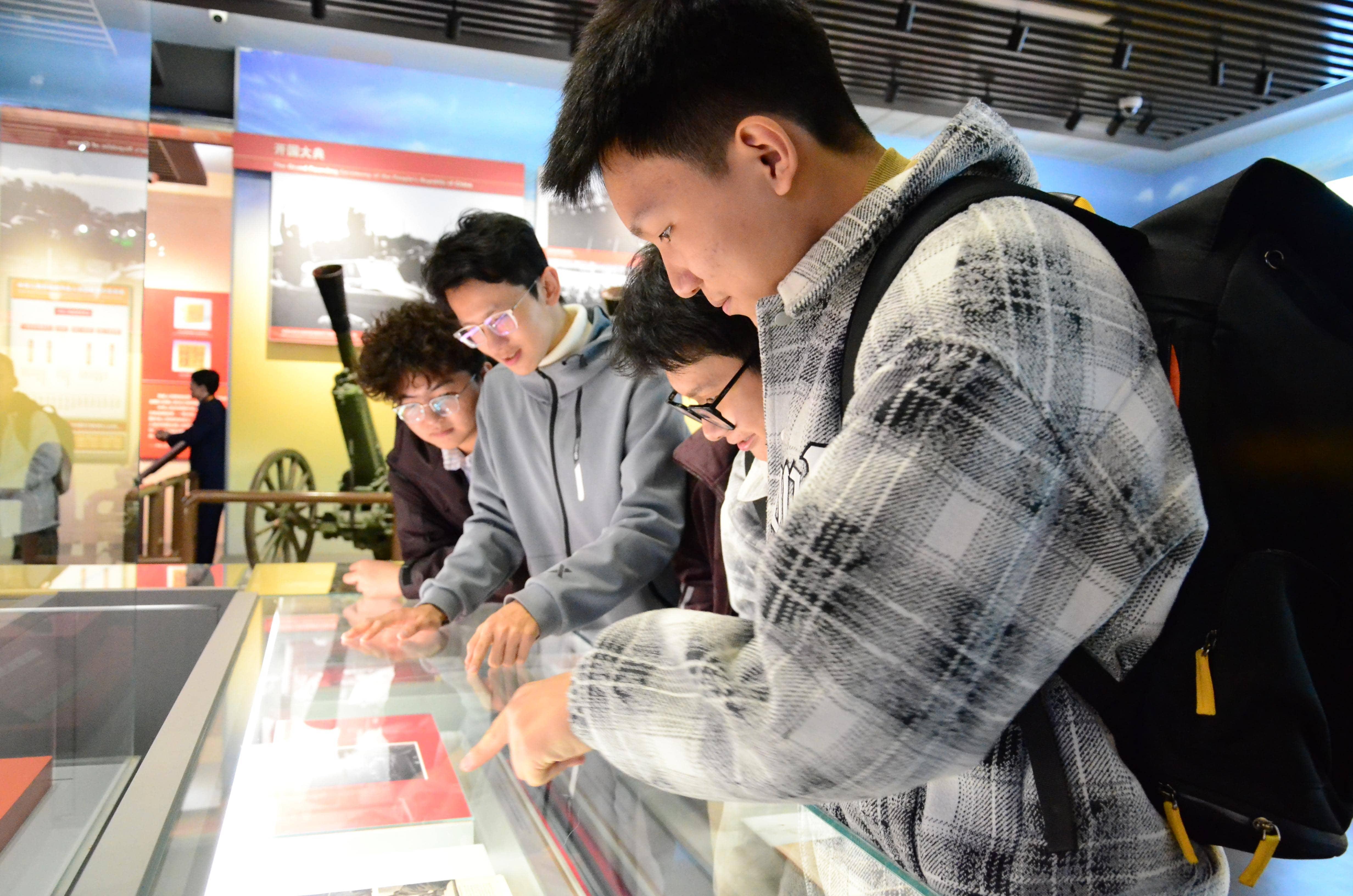 参观过程中,高低年级团员自发组成学习对子,高年级团员结合自动化专业特色与红色故事,分享对“科技报国”使命的理解。低年级团员则围绕学业发展、科技创新等话题踊跃提问。这种交流方式,让大家在了解红色历史的同时,也加深了对专业的认识,还能结合学业发展进行思考,既学到了知识,又得到了成长上的启发。活动中,团员青年们展现出了积极认真、充满朝气的模样。