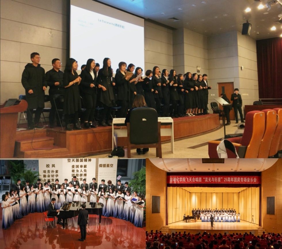 学子自发创建以来,飞天艺术团始终坚持以艺育人、以文化人,历代团员秉承“弦歌不辍守初心、艺心向党担使命”的信念,铸就了以“空天报国、追求卓越”为核心的“飞天精神”。这种精神,在艺术团下属合唱团的团歌《蓝天之梦》中得以具象化呈现——“用青春和理想战胜迷惘,把我们的自信写在万里蓝天,让我蓝天的梦想为我的青春导航,让我似火的激情为我插上高飞翅膀。”这首由2000级学子作词、常任指挥王程老师编曲的团歌,正是自动化学子理想信念的生动写照,成为激励历代团员传承红色基因、矢志科技报国的精神符号。