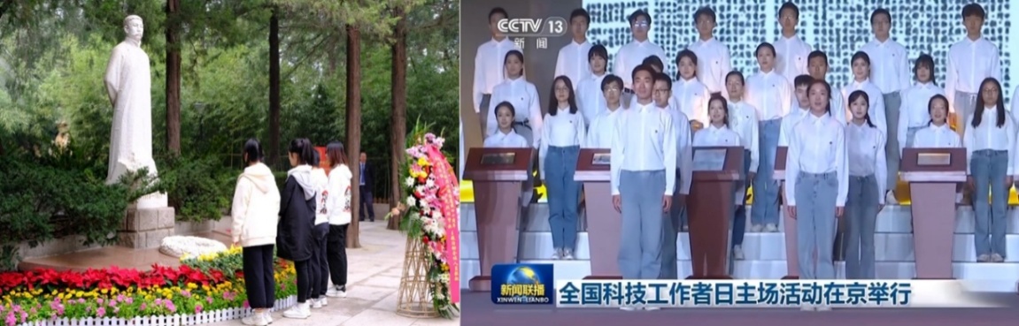 系统性组织校外美育参访活动30余场,覆盖中国美术馆、韩美林艺术馆、北服民族服饰博物馆、国家大剧院等重点文化场馆,参与学生超300人次。这些参访并非简单的“观光游览”,而是精心设计的“沉浸式思政教学”:在科技传播中心钱学森主题“星光阅享汇”读书会中,同学们通过参观“钱学森与两弹一星”展览、深度阅读《钱学森传》、聆听航天专家分享,领略钱学森等老一辈科学家“干惊天动地事,做隐姓埋名人”的奉献精神,进一步坚定“空天报国”的理想信念;在中国美术馆《开国大典》油画前,艺术专业老师现场讲解作品的创作背景与历史意义,引导学生回望新中国光辉历程,强化“强国一代”的使命担当;在“永恒丰碑——唱给先烈的赞歌”主题活动中,同学们在李大钊烈士陵园雕塑前敬献花篮、驻足敬礼,在缅怀革命先烈中感悟初心使命,坚定“听党话、跟党走”的理想信念。